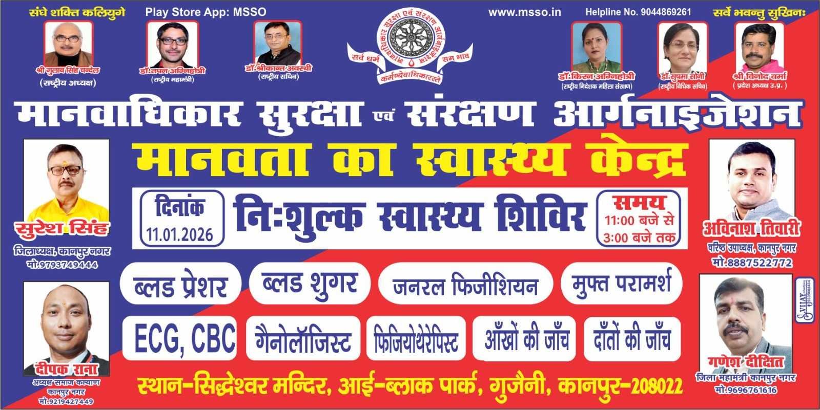 निःशुल्क स्वास्थ्य शिविर! MSSO लाया मानवता का स्वास्थ्य केंद्र—11 जनवरी को गुजैनी में!